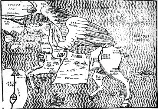 Asia in the shape of Pegasus. Italian map, date unknown.